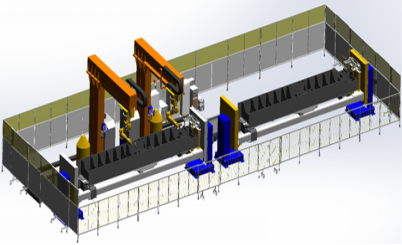 该项目为推土机横梁及翻斗自动化焊接事情站,,,,,,整站接纳倒挂式机械人两台,,,,,,配合两套工装夹具及外部行走轴,,,,,,凭证现场情形接纳双机双工位作业,,,,,,充分包管节奏及焊接品质,,,,,,实现了农业机械的自动化焊接。。。。